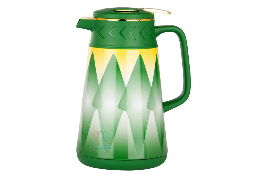 ترمس شاي بنقشة خد الغضار التراثية، تصميم مميز بطابع تراثي، لون اخضر، يحافظ على بقاء مشروباتك ساخنة لوقت أطول.