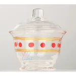 سكرية تقدم مع الشاي لحفظ السكر، خامة مصنوعة من الزجاج تصميم دائري مع الغطاء، بالنقش التراثي.