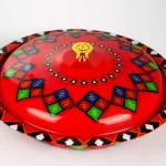 قدر تقديم، خامة من الغضار، تصميم أنيق بطبعات من الزهور والورود، عميقة، سعة القدر 3.8 لتر، غطاء مسطح بدون مقبض، يدين جانبيتين، لون أصفر بحواف كحلي على الغطاء.
